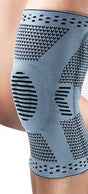 - Masserende silikonpute: Denne puten er plassert over kneet og gir ikke bare stabilisering, men også en beroligende massasjeeffekt som reduserer smerte under aktiviteter som for eksempel hopping.